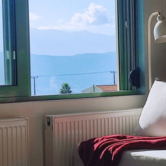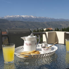 From the windows and balcony you can enjoy a beautiful view to the east, south and west, which includes the sea of Souda Bay and the White Mountains which have snowed peaks most of the time. All around, the tweets of birds and the hum of cicadas is heard.
